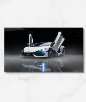 El futuro de la velocidad italiana en tu pared. Disfruta de la presencia imponente del Lamborghini Revuelto con este cuadro canvas de alta gama. Con sus puertas de tijera abiertas y su impecable acabado en blanco, esta pieza captura la vanguardia y el lujo extremo de Sant’Agata Bolognese. Perfecto para espacios modernos que exigen un toque de exclusividad y potencia visual.