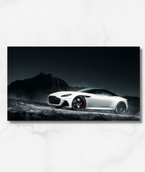 La elegancia del agente secreto en tu propia pared. Este cuadro canvas del Aston Martin DBS Superleggera combina la pureza del blanco con un místico paisaje nocturno de montaña. Una pieza decorativa de alto impacto que proyecta sofisticación, lujo y la inconfundible herencia británica. Ideal para quienes buscan una decoración sobria pero poderosa en su oficina o sala de estar.