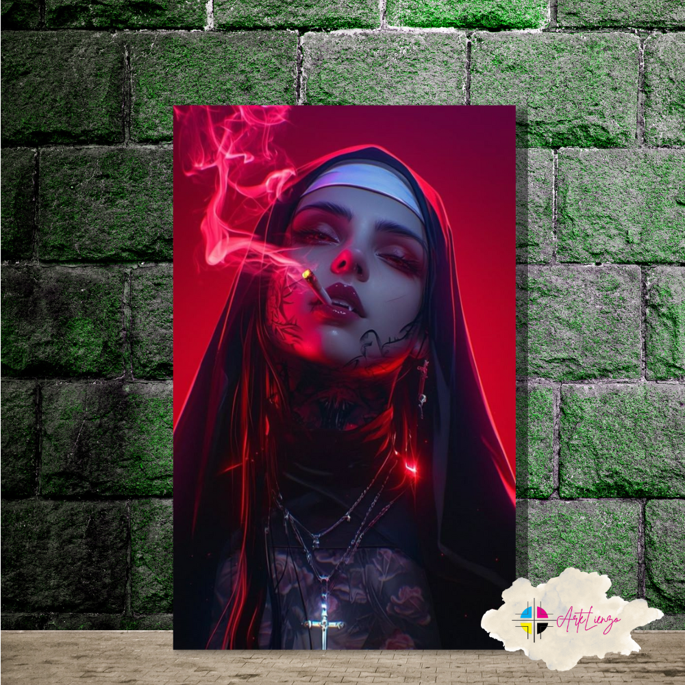 Cuadro de una monja tatuada fumando.