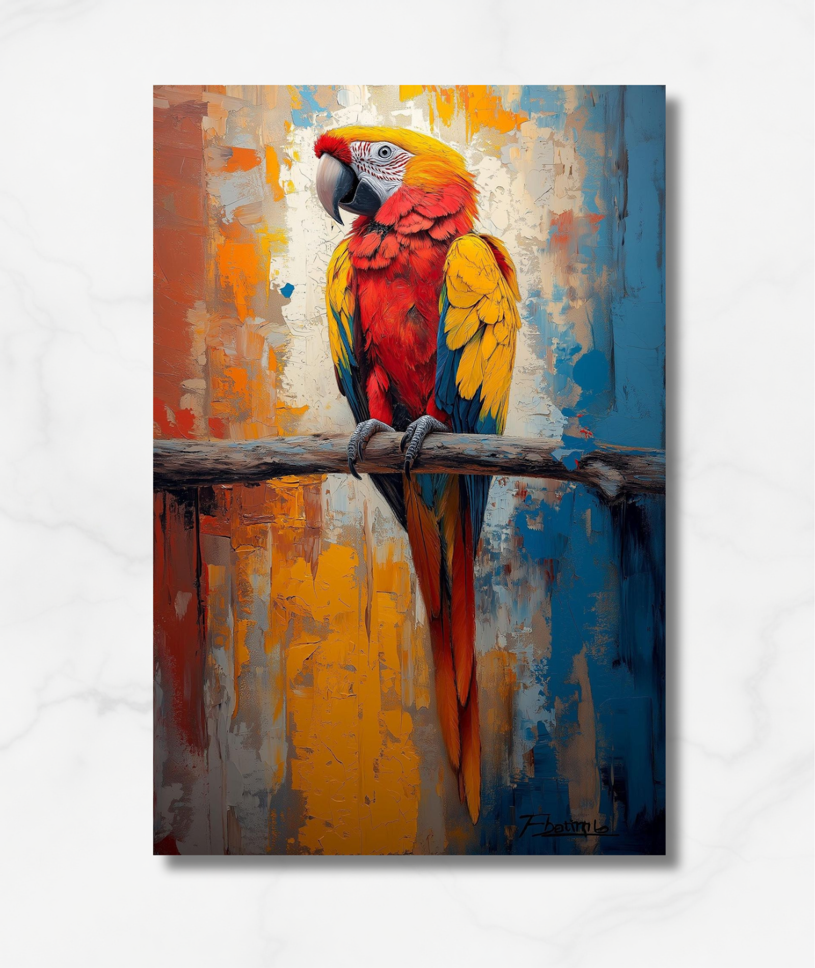 Cuadro de un Guacamayo estilo óleo, dimensión vertical, impreso con la más alta calidad.