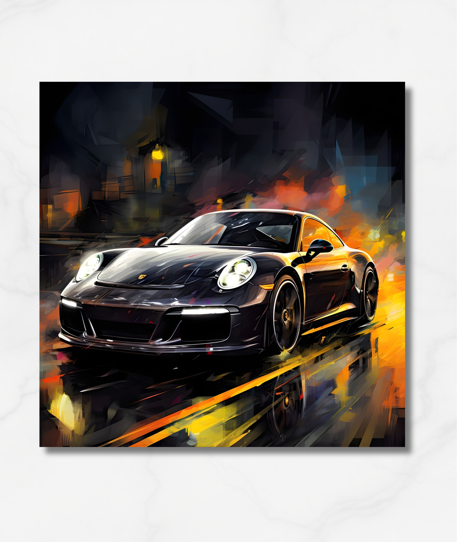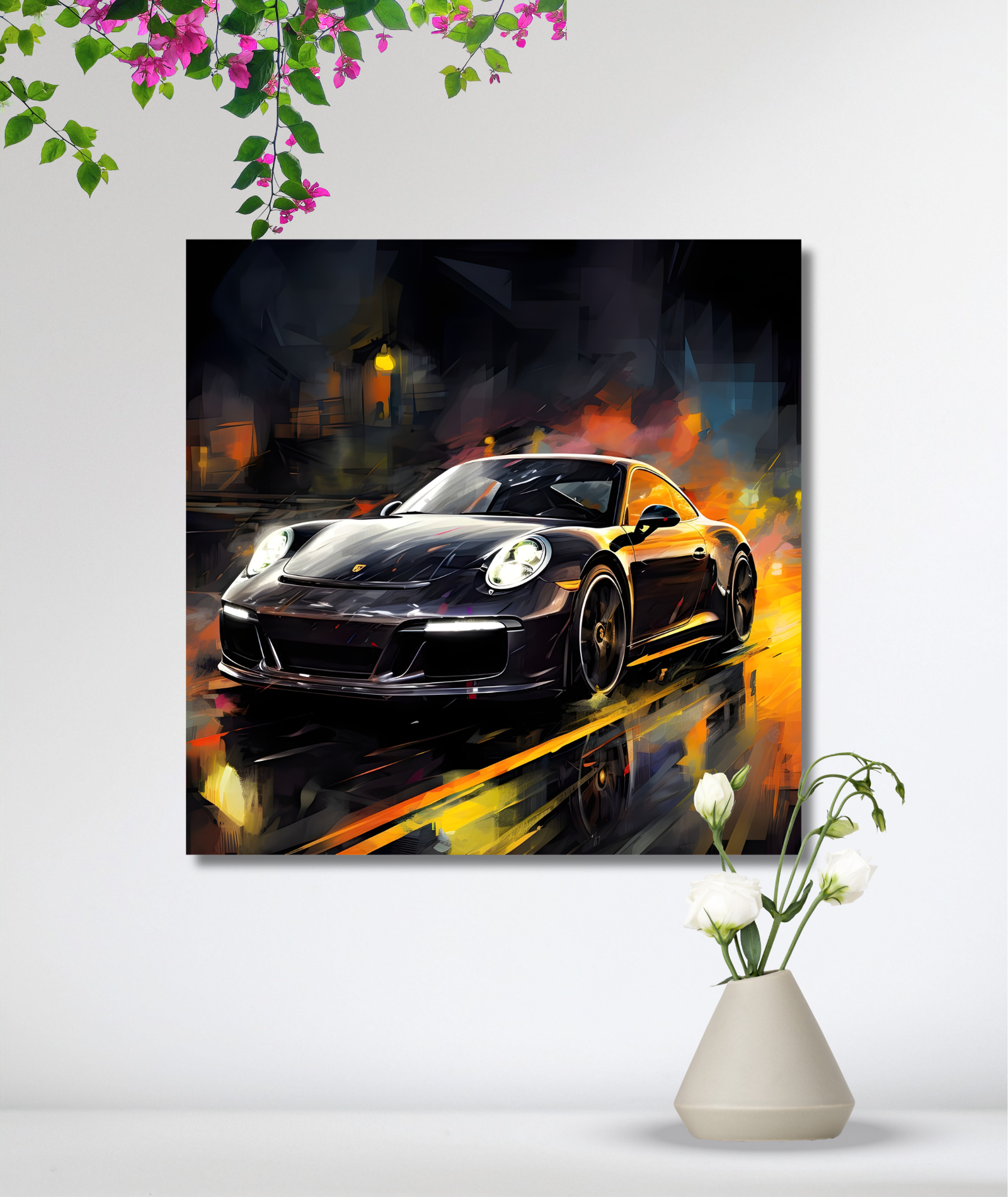 Cuadro de un hermoso auto deportivo Porche estilo óleo
