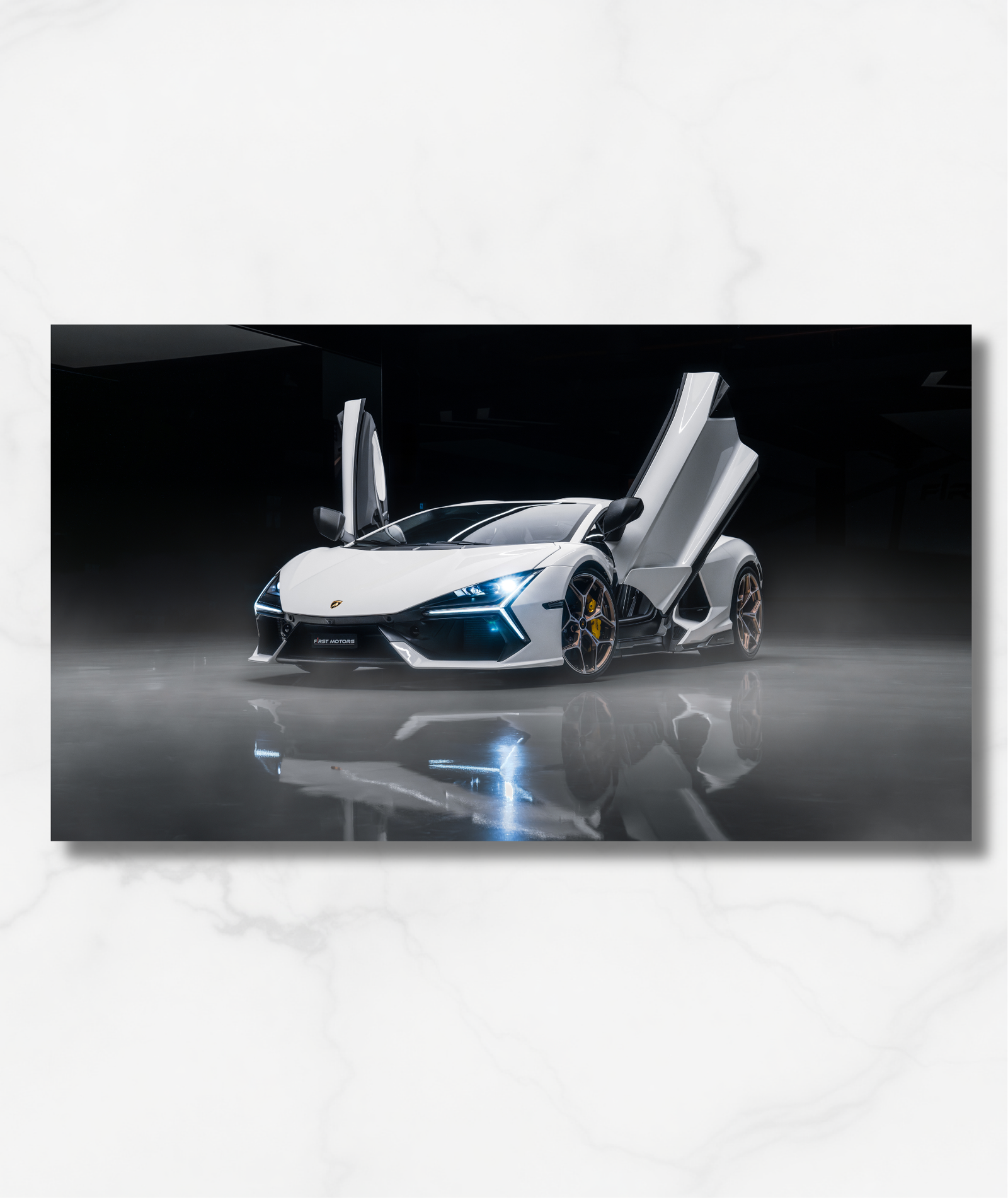 En Artelienzo, fabricamos cada unidad pensando en la perfección técnica que caracteriza a Lamborghini. Queremos que el impacto visual del Revuelto se mantenga intacto en tu espacio.