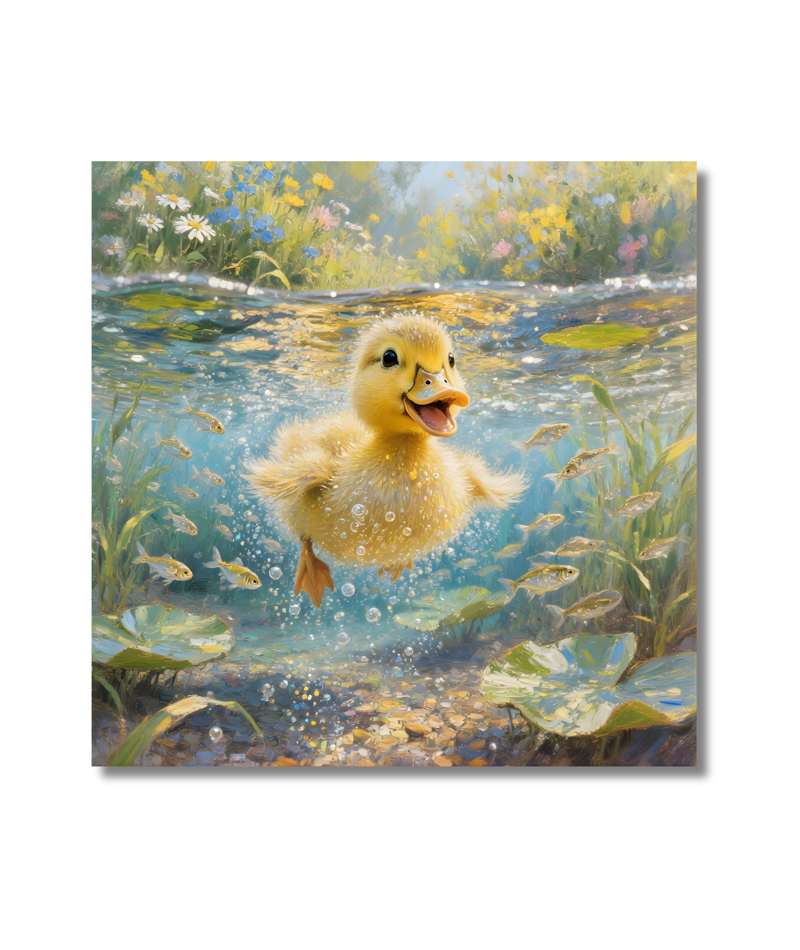 Cuadro infantil cuadrado de patito nadando