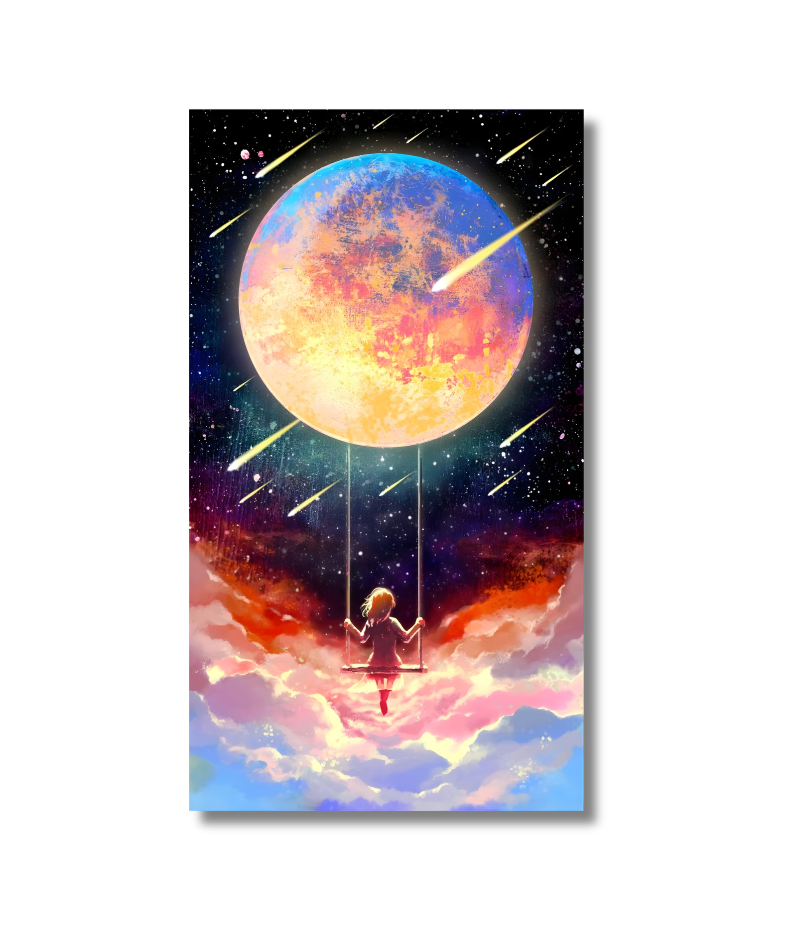Cuadro infantil, niña y la luna