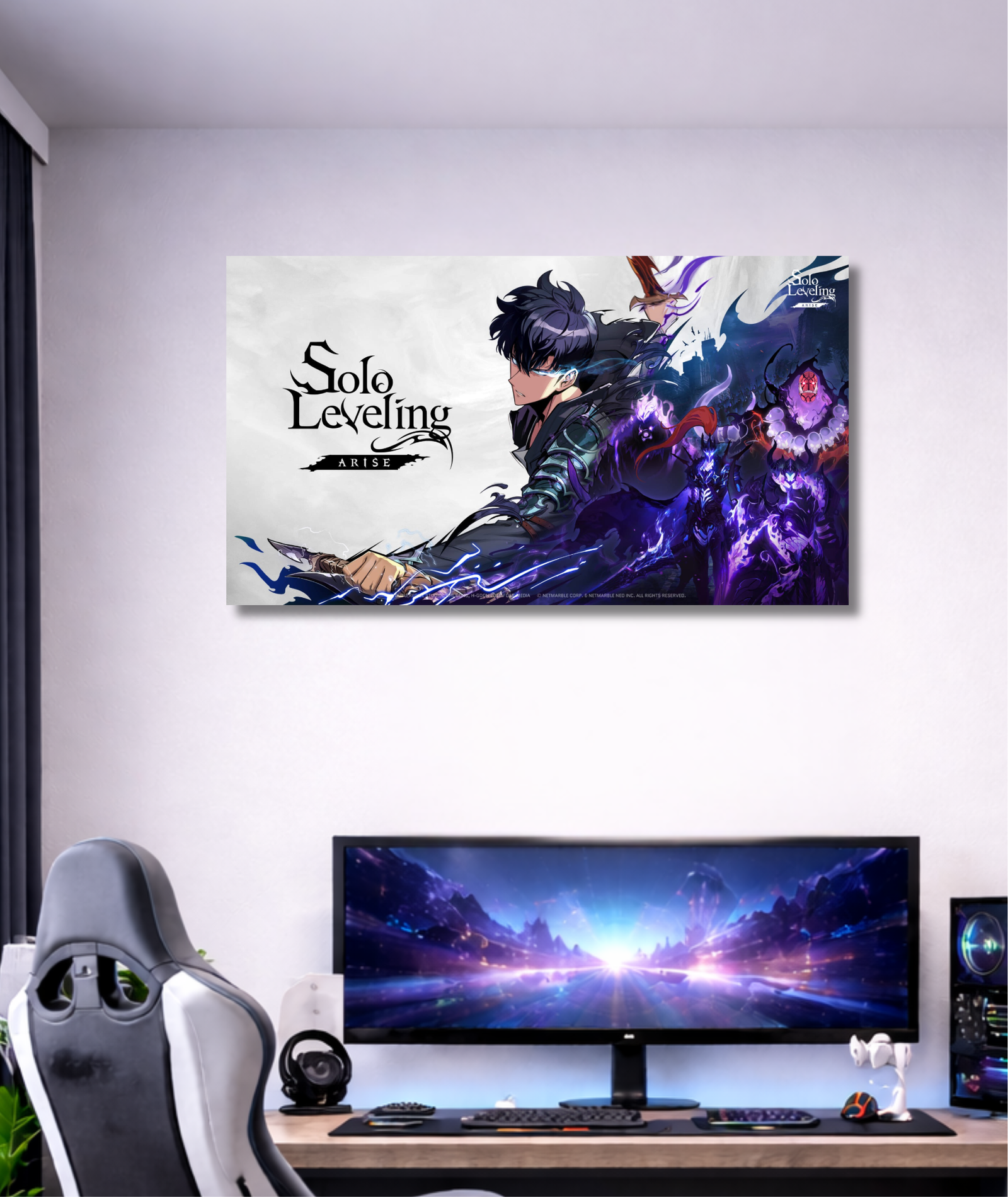 Cuadro canvas inspirado en Solo Leveling, ideal para fans del anime. Decoración moderna, épica y perfecta para espacios gamer. Envíos a todo Chile.