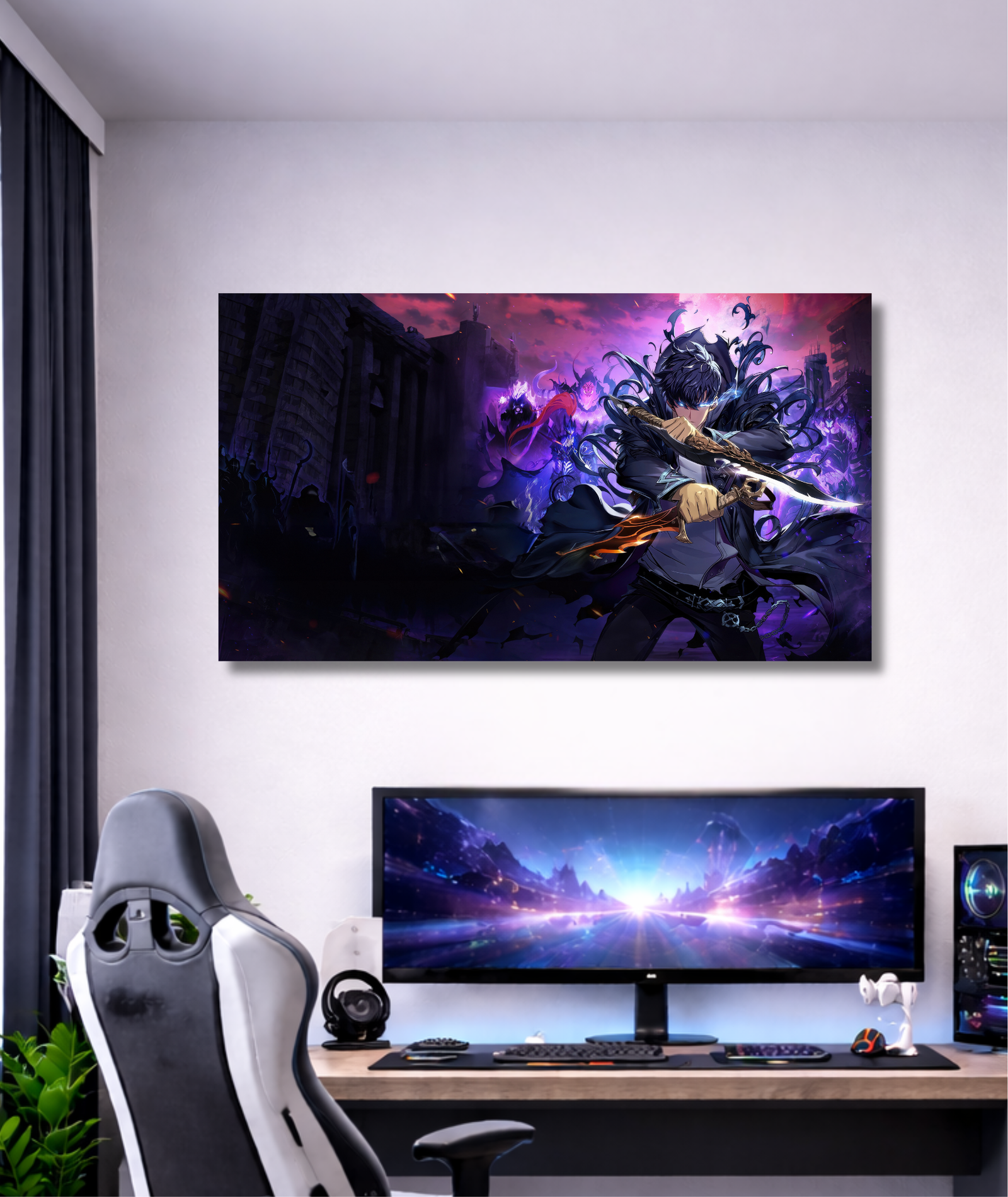 Gracias a su estética moderna y energética, este canvas de Solo Leveling es perfecto para quienes buscan una decoración con personalidad, estilo y pasión por el anime.