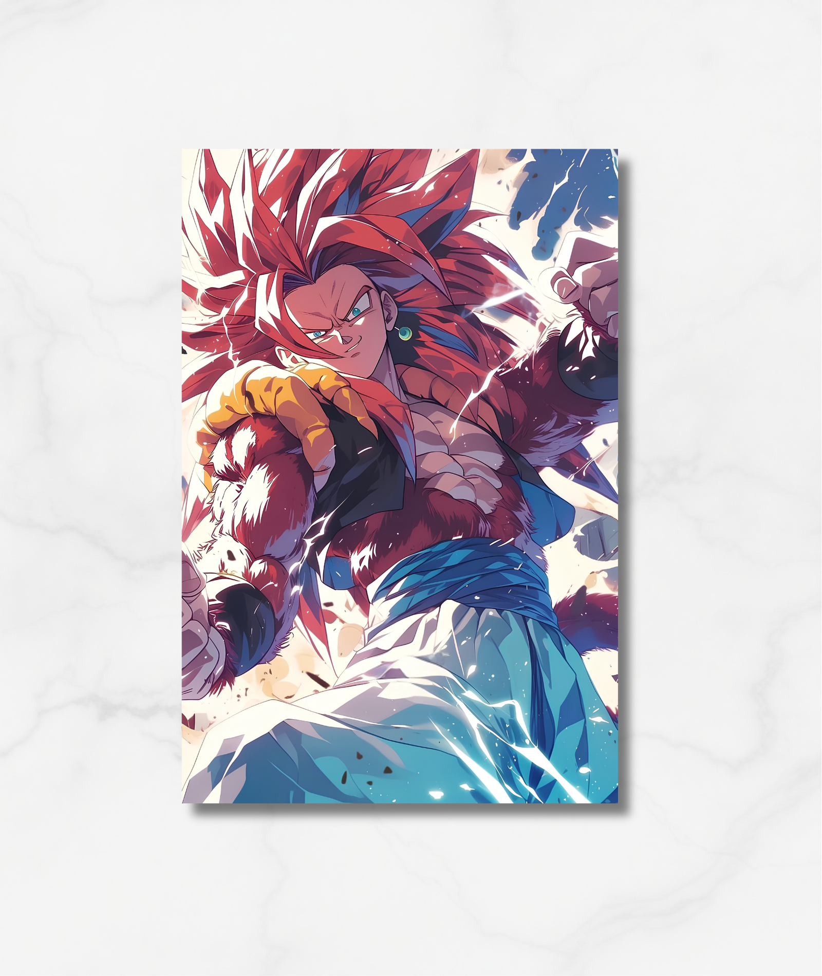 Cuadro de anime DBZ con Gogeta Super Saiyajin 4 como protagonista, cuadro vertical, detalles full HD, impreso con la mejor calidad del mercado